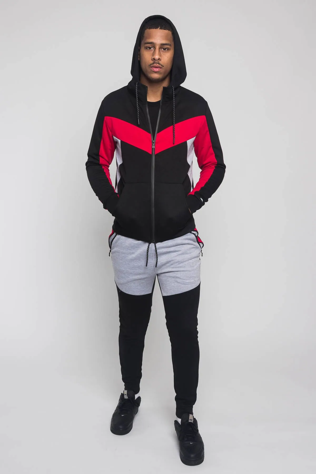 Sticking with the trends and dressing in style has never been so easy. Throw on our new super comfortable and stylish tri colored track suit. Featuring a bold tri-colored design, adjustable draw strings at the waist, and a functional zipper on the jacket. An essential outfit you can throw on and wear on the go. The perfect mixture of style, comfort, and quality so you can look effortlessly trendy and fashionable.